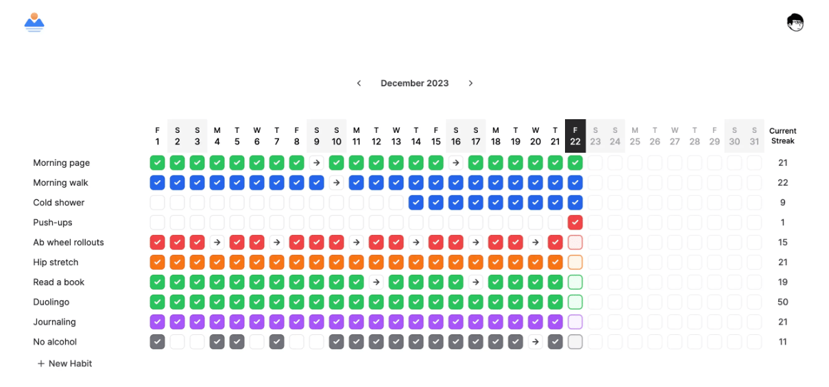 Habitile is a visually engaging habit-tracking app that makes logging and building good habits incredibly simple and rewarding through one-click tracking and celebratory feedback on your milestones. Key takeaways: