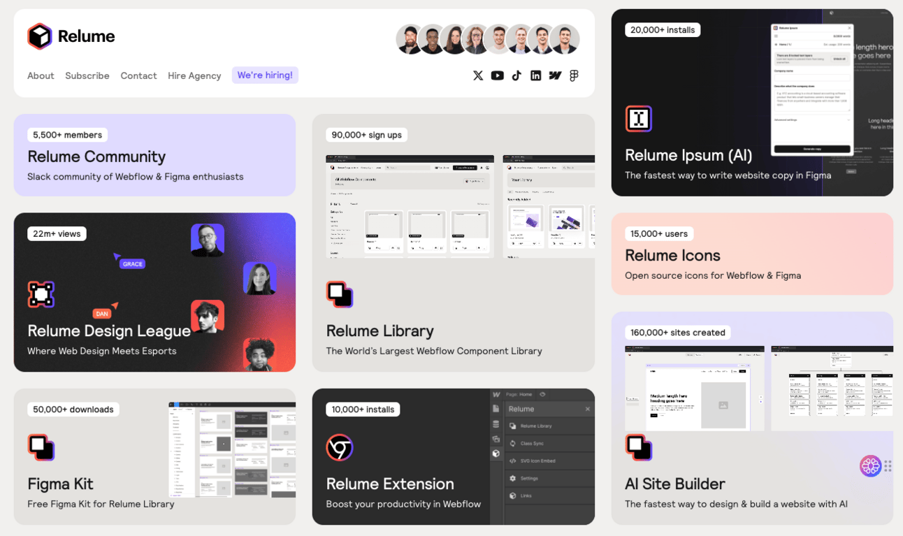 Relume Community - Join a Slack group of over 5,500 Webflow and Figma enthusiasts for collaboration and support.