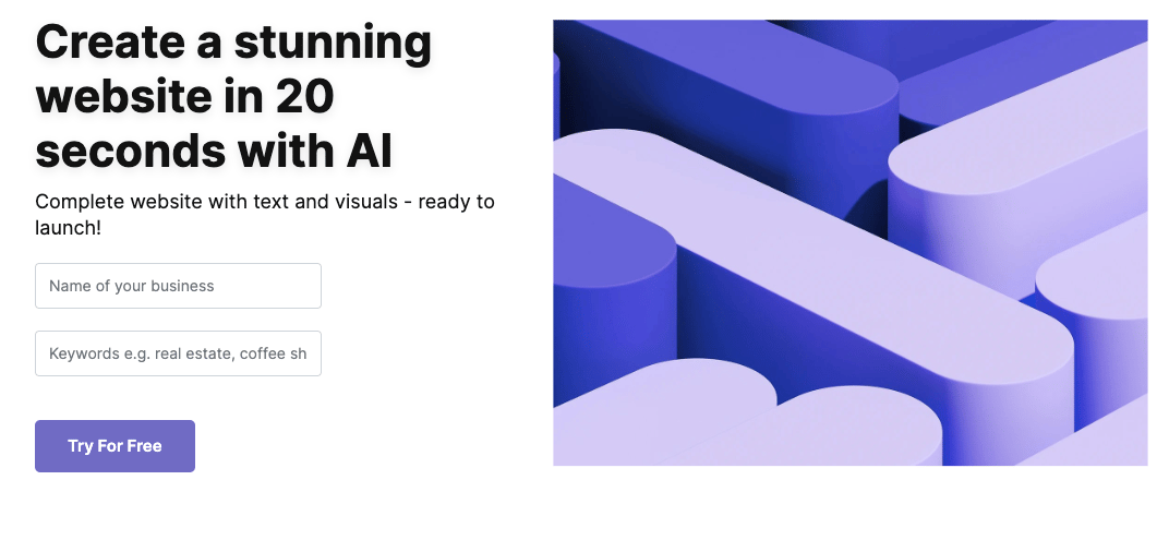 Generate a complete website in just 20 seconds with AI - no coding required! The platform creates stunning sites with custom text and visuals ready to lanch.