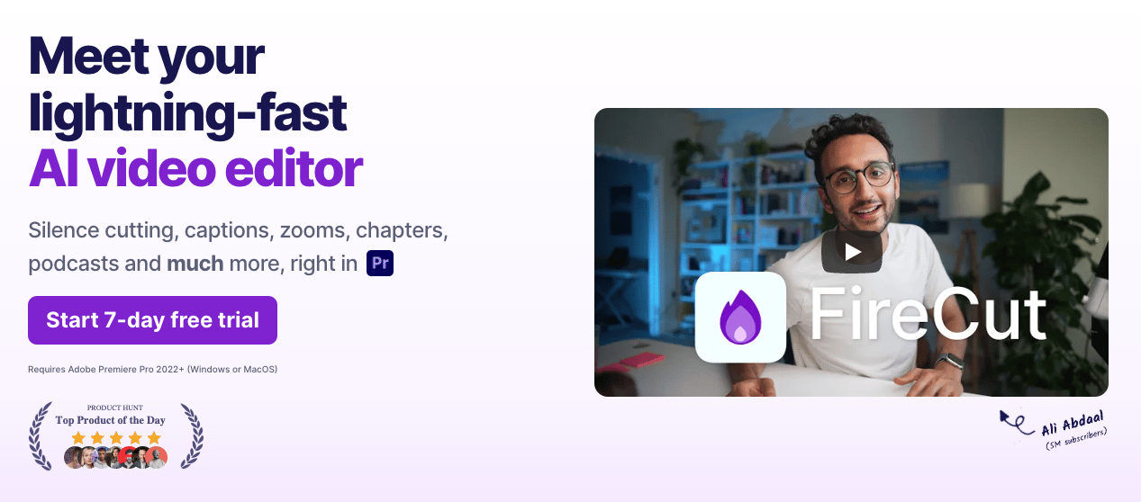 ➡️ Firecut.ai: AI video editing tool designed to enhance productivity and streamline the editing workflow on Premiere.