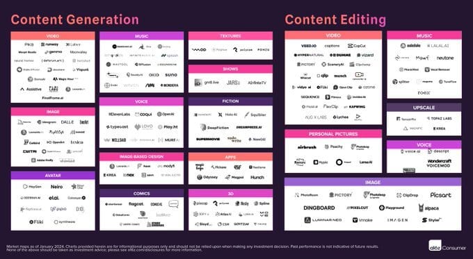 @a16z consumer dove into the first killer use case of AI: making creative content. A recap of the companies tackling generation and editing below.
